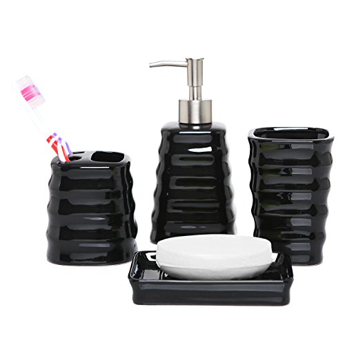 -. Title : 4 Piece Ribbed Ceramic Bathroom Accessory Set w/ Toothbrush Holder, Tumbler, Soap Dish & Dispenser