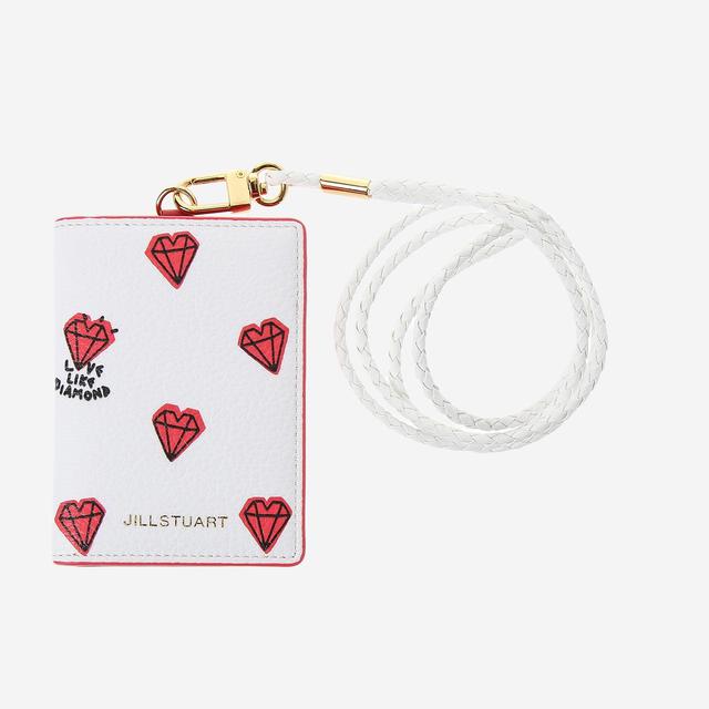 질 스튜어트 고유의 귀여운 하트 다이아몬드 패턴으로 포인트를 준 카드 지갑입니다. 내부 배색으로 걸리쉬한 느낌을 살렸습니다.