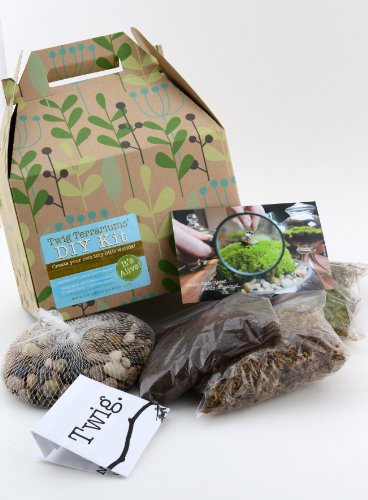 -. Brand : Twig Terrariums -. Feature : Comes with everything you need to create your own little green world in your own container. / Use your favorite lidded jar and create your own terrarium / A wonderful little man or woman included / Fresh moss, soil, filtration, and rocks are included in the box. / Not intended for children under 7 without adult supervision. -. Label : Twig Terrariums -. Manufacturer : Twig Terrariums -. ProductGroup : Lawn & Patio -. ProductTypeName : SEEDS_AND_PLANTS -. Publisher : Twig Terrariums -. Studio : Twig Terrariums -. Title : DIY Moss Terrarium Kit for One-gallon Sized Container