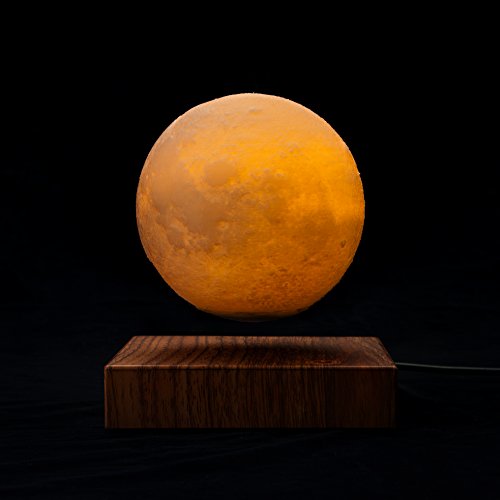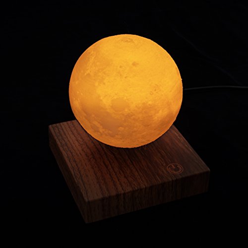 Moon Light Dimensions: 15cm in diameter Levitating Docking Dimensions: 12.2cm x 12.2cm x 3cm Moon Light Material: PLA Base Finish: Walnut wood Lighting Color Options: Warm yellow and cold whi How does the Wireless Charging Levitating Moon Light Works: There will be one touchable button at the bottom of the moon light and one switch on the docking. They will bring the moon light to different light mode with different combinations. Levitating Mode: Battery mode with cold white lightFeature