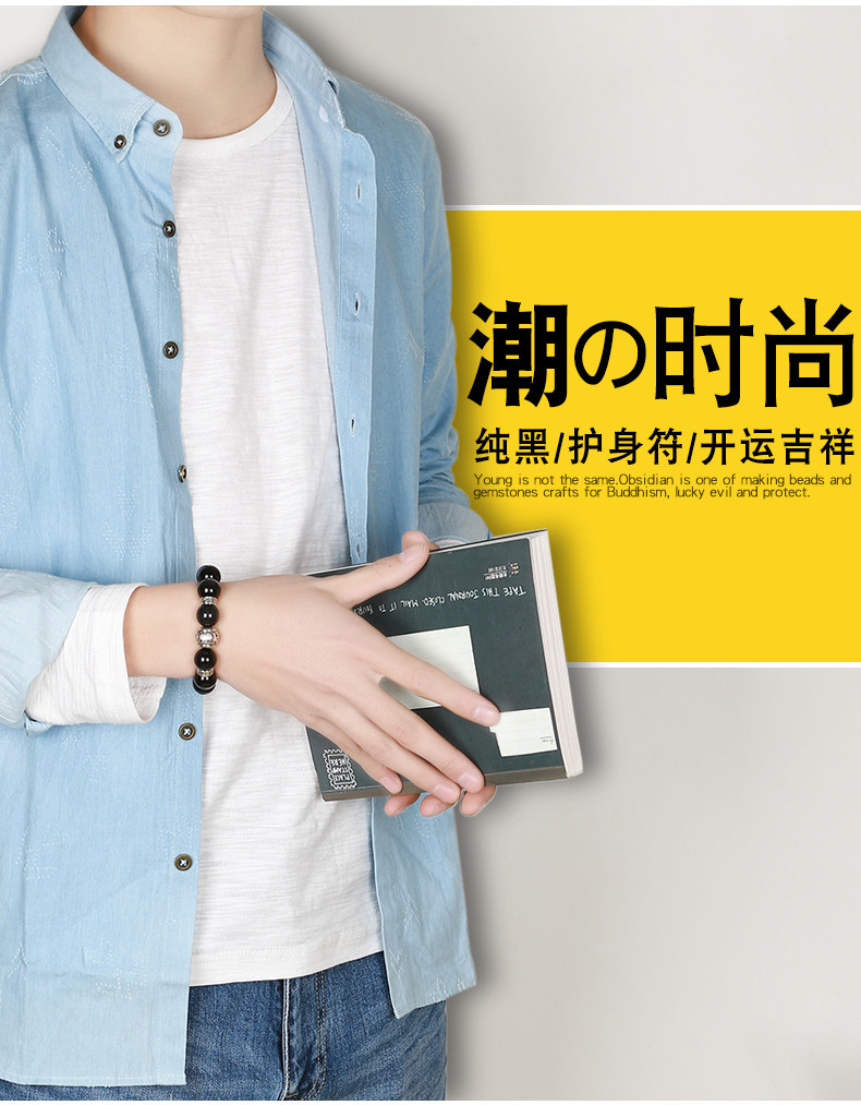六字真言鸡年本命年手链男女乌金黑曜石手串天然水晶转运佛珠开光