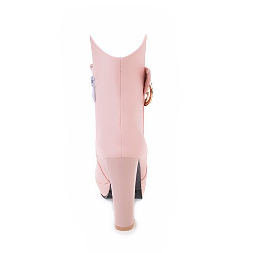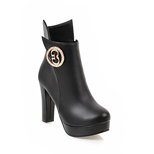 (BalaMasa)/Women's/Boots/DIRECT FROM USA/BalaMasa Womens High-Heel Chunky Heels Solid Round-Toe Urethane Boots ABL09577