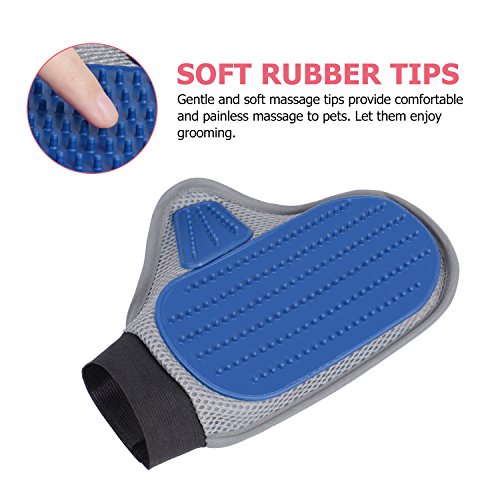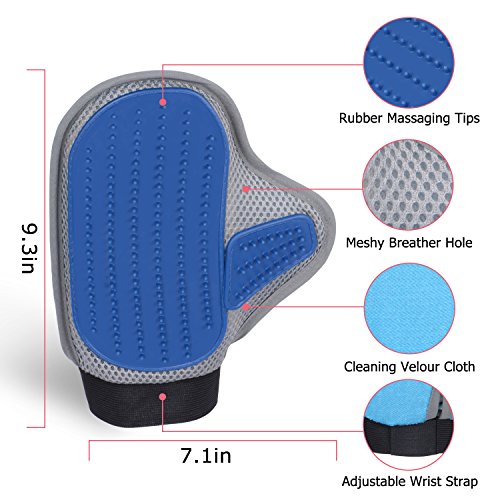 Why Choose Adoric Life Two-sided Pet Gromming Glove Two Functions - Not only brush away loose hair of pets, but also easily remove fur from furniture. Gentle to Pets - Soft rubber grooming tips provide gentle and comfortable massage to pets. Adjustable Velcro - adjustable wrist strap design, one glove is suitable for all family members. Breathable Fabric - Soft glove is comfortable to wear, protecting your hands while grooming. Meticulous Stitch - Exquisite workmanship, no thread residue, no pilling or fade after washing. Broad Application - Work with all kinds of coat types: long, short and curly hair pets all enjoy it. Benefits of Groom Pet Hair Regularly Promote blood circulation: When you brush your cats or dogs, rubber tips will massage their skins repeatedly and promote blood circulation. It will help to enhance resistance of the skin and relive fatigue feeling. Reduce hair shedding: Brush pet hair in time can prevent your pets shedding loose hair around the room while playing and relieve the burden of cleaning house. Effectively resist hair knot for cats or dogs with long hair. Make pet more beautiful: Comb the hair frequently can stimulate hair follicles to improve quality and quantity of the hair, making the hair smooth, shiny and elegant. Package Include and Warranty Policy Package includes 2 pack pet grooming gloves (one left hand one right hand). Every pet hair remover mitt includes a ONE year quality guarantee. 0