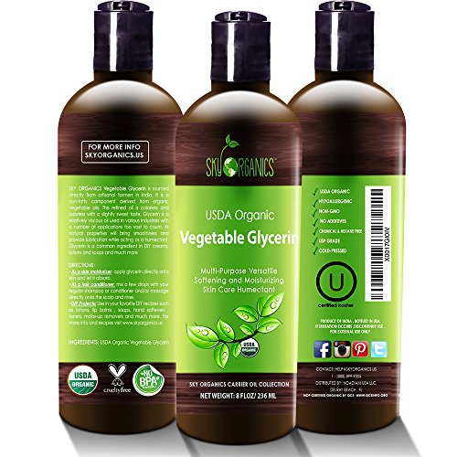 Organic Vegetable Glycerin by Sky Organics - Non-GMO, Kosher, USP Grade, Hypoallergenic, Cold-pressed - Benefits Hair & Skin - Excellent Emollient- Ideal Soap Base, Moisturizer and DIY- 8oz