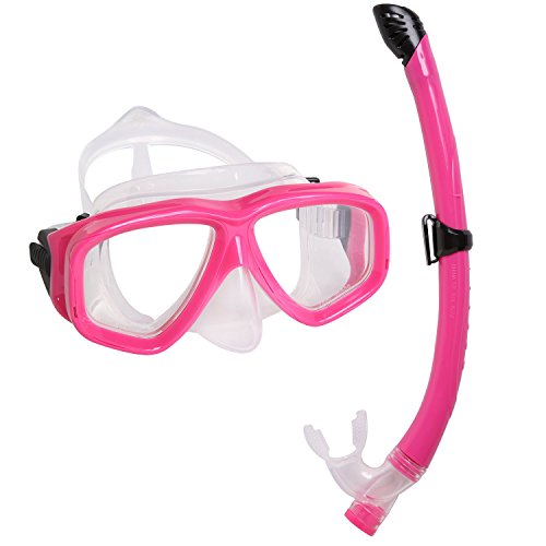 Snorkel Mask Set - KIDS Snorkeling Gear - Double Lens Diving Mask & Snorkel Semi Dry Top, Lower Purge Valve, Perfect for Diving, Snorkeling, Swimming -Ivation,Pink