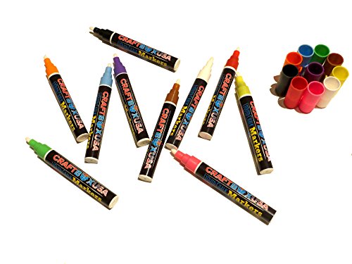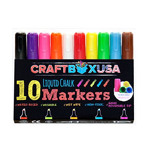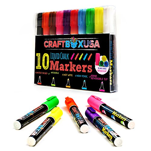 Title : Liquid Chalk Markers - BRAND NEW Lids to Prevent Damage to the Nib - Craft Box USA - 10 Chalk Ink Pens - 6mm Reversible Tip - Use on Chalk Labels, Glass, Restaurant and Bistro Menu Boards - Kids Art