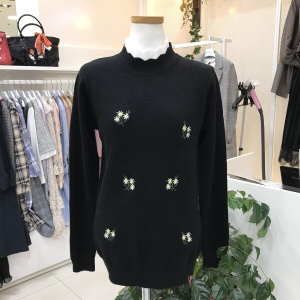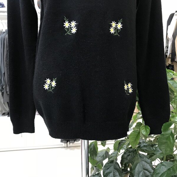 네크 배색 앞판 자수 니트 티셔츠입니다하이넥 카라로 배색 처리가 되어 여성스러우면서 고급스러운 디자인의 니트 티셔츠랍니다도톰한 원단감으로 따뜻하고 부드러운 소재로 착용감이 좋답니다꽃자수 포인트로 밋밋하지 않고 이너로 활용하시기 좋답니다사이즈 FREE가슴둘레 45cm총장 62cm