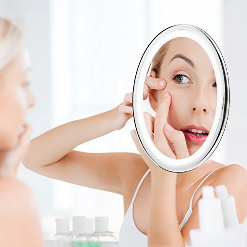 NATURAL LED LIGHT: This shower mirror delivers a soft natural bright ring light. Use it as a wall mounted bathroom mirror, a travel mirror or a wireless mirror for plucking eyebrows.