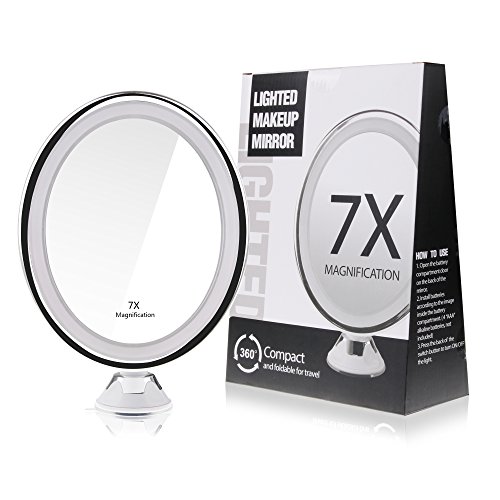 7X Magnifying Lighted Makeup Mirror with Suction Cup By Terresa - Lightweight Travel and Oval Design Bathroom Shower Mirror with Lights and...