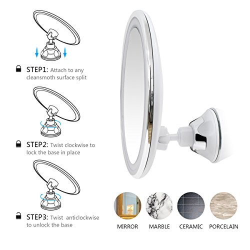 STRONG LOCKING SUCTION: Each magnifying mirror outfit with an ultra strength suction cup, 360°swivel arm, fully adjustable to any desired angle or position. All you have to do is stick it to any smooth surface, such as glass, mirror, marble, ceramic and more.