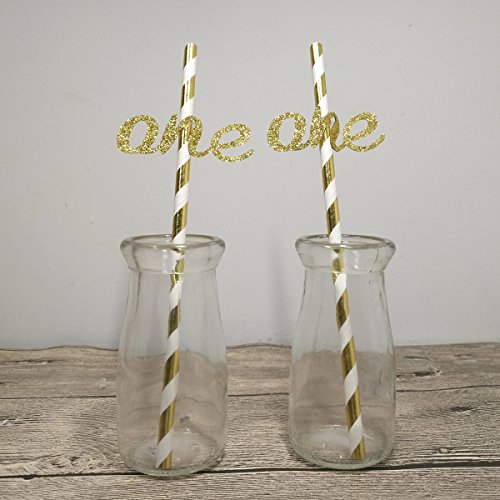 Set of 24 Striped Decorative Paper Straws Gold Baby's 1st Birthday Party Decorations - By Giuffi