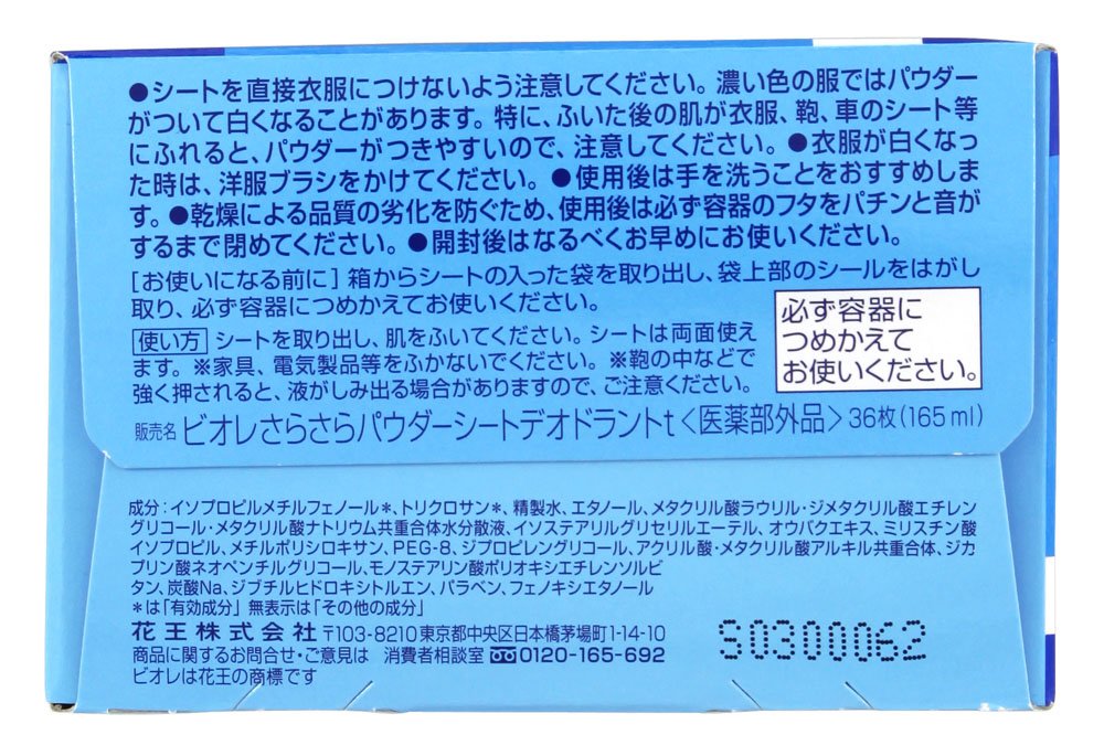 Kao Biore Sarasara Powder Sheets | Skin Care Cleansing Cloth | Deodorantet 36 Sheets No Fragrance (Refill)