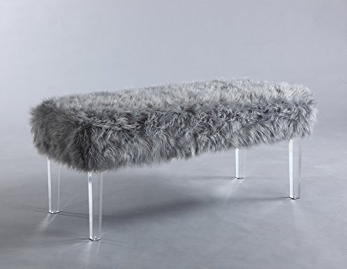 Furniture World Sophie Accent Bench with Faux Fur Seating, Grey