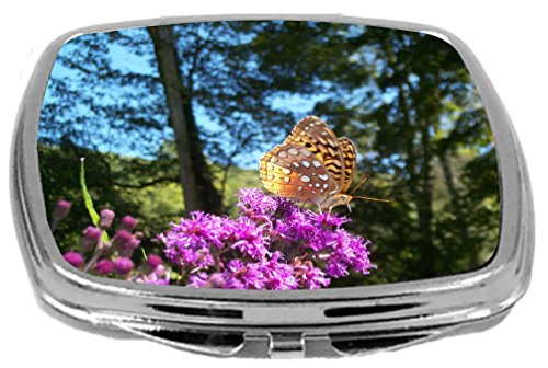 Rikki Knight Compact Mirror, Enchanting Butterfly on Pink Flower, 3 Ounce