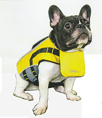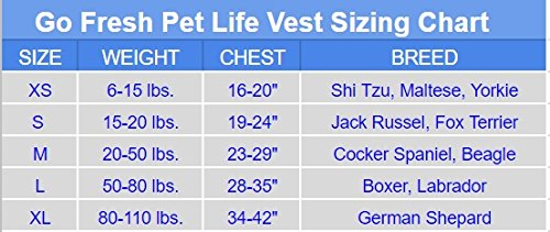 -. Binding : Misc. -. Brand : Go Fresh Pet -. Feature : High buoyancy foam to support dog's natural swimming position / Adjustable velcro closures at waist and neck / Floatation chin flap to keep head above water / D-ring for lease attachment / Ultra comfortable handle -. Label : Go Fresh Pet -. Manufacturer : Go Fresh Pet -. PackageQuantity : 1 -. ProductGroup : Pet Products -. ProductTypeName : PET_SUPPLIES -. Publisher : Go Fresh Pet -. Studio : Go Fresh Pet -. Title : Go Fresh Pet Life Vest