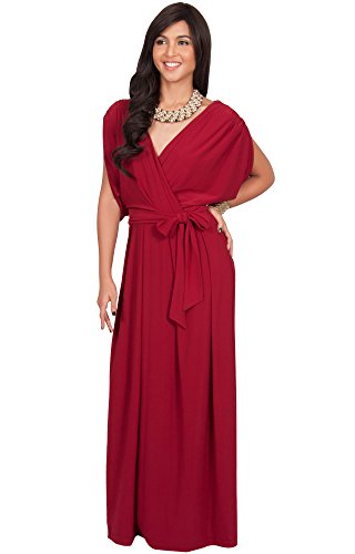 A very elegant designer maxi dress from Koh Koh. This beautiful short sleeve maxi dress features batwing or dolman sleeves, a crossover chest and a pleated empire waist skirt which provides the design with a lovely flow when walking. In addition, the design has an elastic waist which will ensure that this design is a wonderful fit for all body shapes. This super versatile maxi dress design makes for the perfect all-rounder, it can be worn as a cocktail dress, evening dress, formal dress, or even as a maternity dress or pregnancy maxi for those expectant mothers. The design is an understated glam design, perfect for wedding party dresses, bridesmaid dress, mother of the bride dress and mother of the groom dress. Many ladies have used the white of ivory color as a wedding dress. These versatile maxi dresses are available in color Crimson Red and Plus Size Extra Large / XL / 14-16.