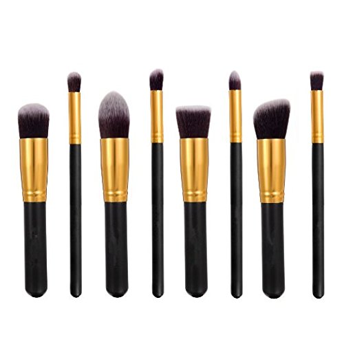 KLAREN 8pcs Premium Synthetic Kabuki Makeup Brush Set Cosmetics Foundation Blending Blush Eyeliner Face Powder Brush Makeup Brush Kit (Black + Gold)