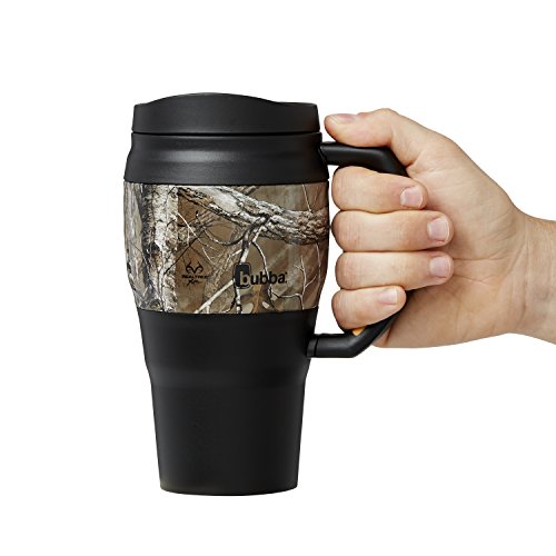 The bubba 20 ounce Classic Travel Mug feature the RealTree design is for personal use and is perfect for use in transit or at work. This travel mug is made of high quality food grade quality stainless steel and has dual wall insulation, made from high performance insulation to keep your drinks hot or cold longer. Designed to fit most cup holders, it has an easy-drinking lid and features a locking flap. Holding just three 8 ounce cups, its the perfect size to get you going in the morning without slowing you down.Feature