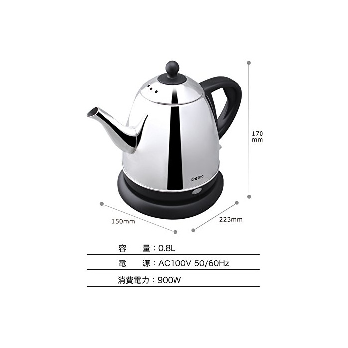 DRETEC Dretec(드 re 텍) 전기 주전자(케토루.kettle) 스테인레스 커피 drip 포트 세입 0.8L PO-115BKDI (블랙)