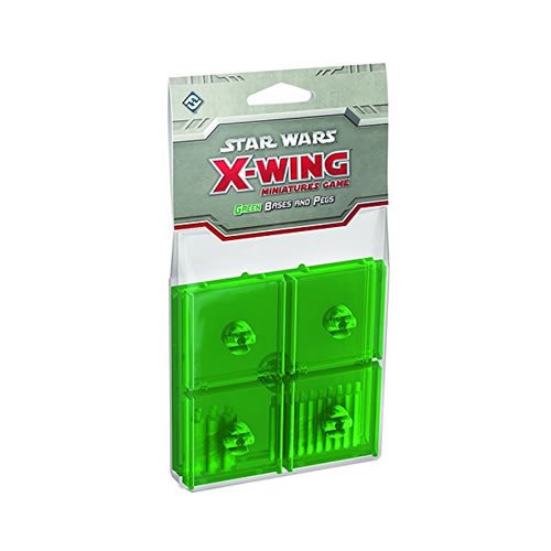 Customize your X-Wing squadron with colored X-Wing Bases and Pegs. This accessory package comes with four small bases, ten small pegs, one large base, and three large pegs. All of them are made to the same specifications as standard X-Wing bases and pegs, and all of them are tournament-legal. Use these bases to identify the different ships in your squadron, to distinguish your squadron from your opponent's, or simply to add an extra touch of color to your battles for the galaxy. Color: Green.Feature