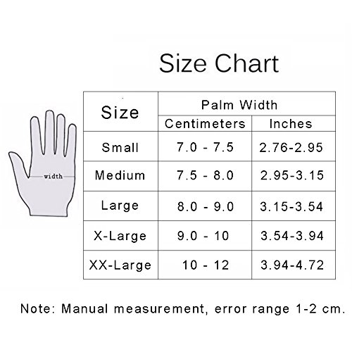 Note: ??? 1. Palm width is measured by ruler around palm without thumb. ??? 2. Please allow 1-2cm (0.4-0.79") difference due to manual measurement and slight color variation for different display setting. 0
