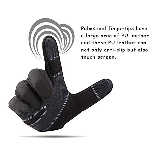 Features: ?? ?Five finger all can touch screen; ?? ?Windproof and waterproof; ?? ?Wrist plus velvet and elastic; ?? ?Lined with high quality fleece, keep warm; ?? ?PU leather which can anti-skid and touch screen.