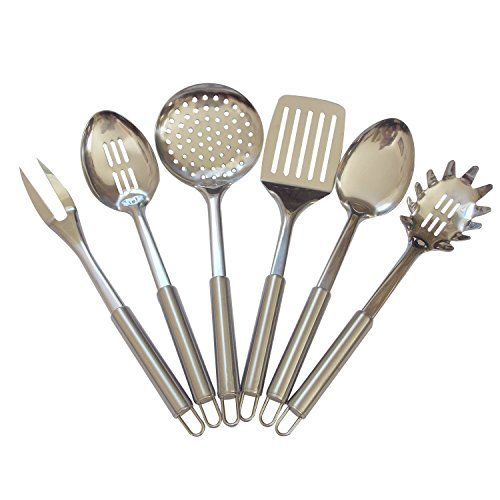 -. Title : Cooking Utensils Set, Sofie's Cottage Stainless Steel Kitchen Utensils Set of 6, Spoon, Slotted Spoon, Spatula, Fork, Skimmer & Pasta Spoon, Durable, Easy Grasp Handles, Hangable, Safe for Dishwasher by Sofie's Cottage