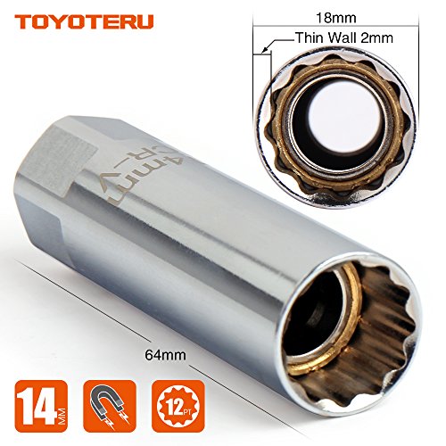 TOYOTERU Magnetic Spark Plug Socket Thin Wall 3/8" Drive 12- point 14mm For BMW Nissan Mini Series