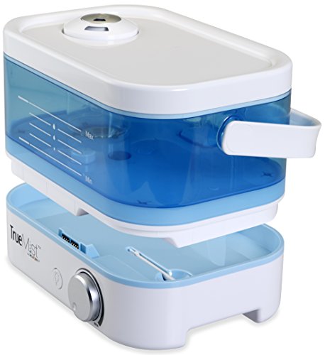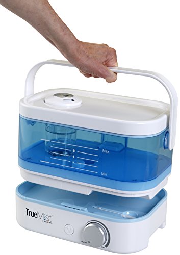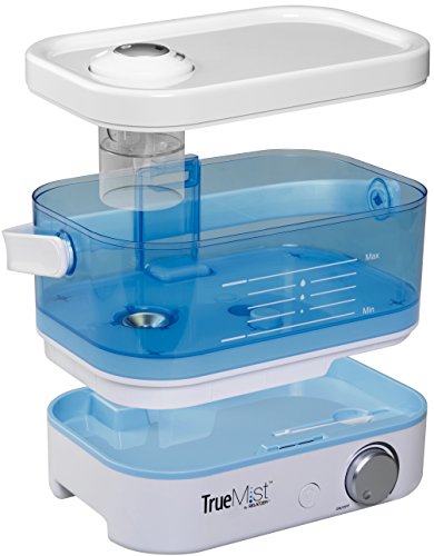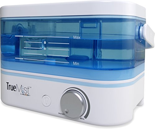 Studio : Comfort Products, Inc. Publisher : Comfort Products, Inc. Binding : Kitchen Product Description A humidifier makes the home healthier, especially for children. So why can't a product designed for health be easier to clean, maintain, or even use? Thanks to its patented design, the TrueMist HCM-29360107 Top Fill Humidifier solves this mystery like no other. Easiest to Clean and Maintain: Unlike other humidifiers, TrueMist has a wider, fully open tank (no hard to reach areas and components). This helps maintain mist quality and extend product life. What's more, water never comes in contact with the base, so the base stays dry and clean. Plus, there's no messy filter to change. Easiest To Fill: The wider, fully open tank easily fills using any container, yet its unique design allows it to fit under most faucets. Using the convenient carrying handle, the tank easily detaches from the base. The handle keeps a full tank balanced when transporting and reattaching to the base without spilling. Customize Mist Output, Comfort and Ambiance. A multidirectional mist nozzle easily allows you to target specific areas of the room. Like a sound volume control, a variable mist control knob allows you to change mist volume output, which is continuous for 16 hours (highest setting) to 48 hours (lowest setting). A water level sensor automatically shuts the mist off. Quiet and Soothing: To enhance relaxation, a special night light gently illuminates the tank with 7 color options. And its sound suppression device quiets running noise to little or nothing. You simply won't find a humidifier quite like TrueMist. Exclusively offered by Relaxzen, part of the Comfort Products family. With a history dating back to 1919, Comfort Products specializes in affordable products for better living. 0