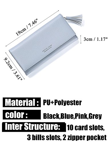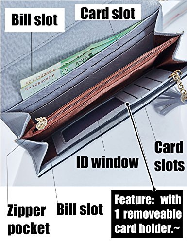 -. Feature : Inter Structure: 10 card slot pockets , 1 photo slot pocket ,2 zipper pocket and 3 bills slots. Material: Top grade PU leather and wear-resisting fabric with exquisite metal hardware. / There are 4 colors for your choise: Black,Light Blue,Pink,Gray. Amazing touching feeling and reasonable dimensions of the wallet, which makes users feel comfortable and look stylish. / Put it into your handbag, can hold bills, change, credit cards, photo, ID card, business card, etc. It is very elegant and suitable for many occasion like party, shopping, restaurant etc / Dimensions: ( L*W*H ) 19 cm x 9.2cm x 3 cm (7.46inch x 3.61inch x 1.17inch) / BUY WITH CONFIDENCE: We dedicating to provide 100% fine customer service, excellent products, affordable P.R.Ices and fast delivery. Make every effort to make every customer get a good shopping experience here. 100% Satisfaction Guarantee,Free return within 30 days.If you are not satisfied with this wallet, simply return them for a full refund no questions asked.