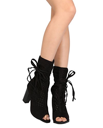 Studio : Breckelles Publisher : Breckelles Binding : Apparel Product Description These peep toe boots are made with a faux suede upper, perforated details throughout, and wraparound tie strap. Also made with a single sole, chunky heel, and side zip for easy slip on and off. 0