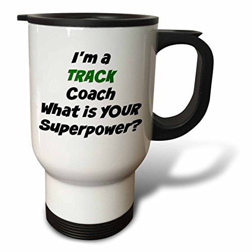 3dRose I'm A Track Coach, What's Your Super Power Travel Mug, 14 oz, Stainless Steel, White