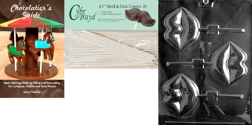 Cybrtrayd 'Large Lips Lolly' Valentine Chocolate Candy Mold with 25 4.5-Inch Lollipop Sticks and Chocolatier's Guide