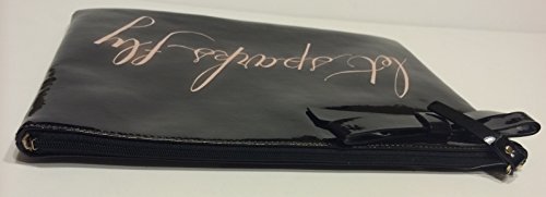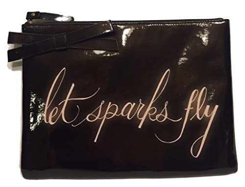 - Feature : This patent pvc pouch is printed with 'Let sparks fly' in gold foil.. Front bow applique. Back signature staple. flat pouch with a zip top closure. Lined/\. 8''h x 11''w x 0.6''d Imported