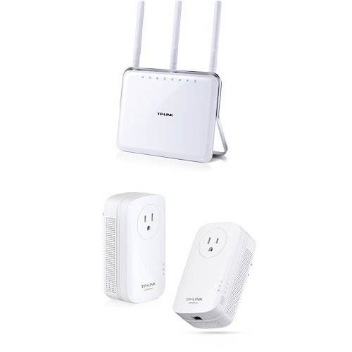 TP-LINK Archer C9 AC1900 Dual Band Wireless AC Gigabit Router and TP-LINK TL-PA8010P KIT AV1200 Gigabit with Power Outlet Pass-through Powerline Adapter
