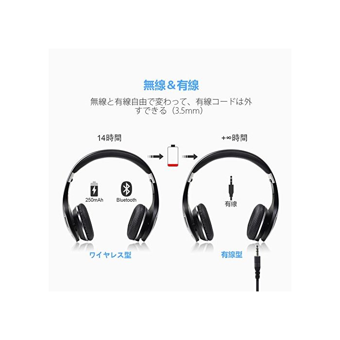 원본상품명: KingYou Bluetooth 4.0 ワイヤレス ヘッドフォン 高音質 ハイレゾ音源 無線有線用 折りたたみ式 ヘッドホン 日本技適認 HD-007