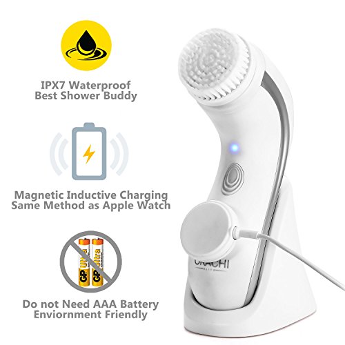 【Waterproof and Inductive Charging】Adopts ABS material, which touches like silicone, with completely sealed brush body. It's comfortable to catch and it reach IPX7 waterproof level. Advanced magnetic charging method as Apple Watch to ensure its water resistance. Save your money on buying AAA batteries! Your favorite shower buddy!