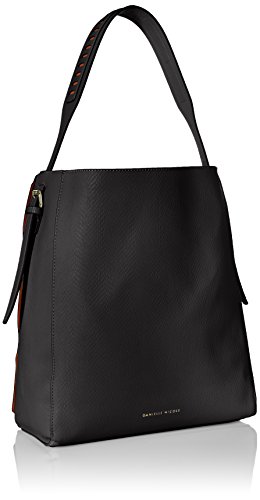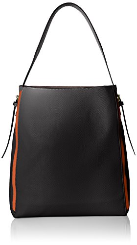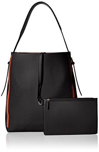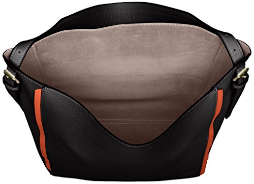 A structured base brings definition to this hobo that features contrast trim at side seams and underlaid at laser-cut handle