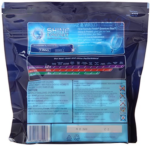 From the world's no.1 Recommended brand, finish quantum max automatic dishwasher detergent with power gel and shine & protect glass protect action delivers an ultimate clean and amazing shine so that you don't need to pre-rinse. Its breakthrough multi-chamber dishwashing technology activates each of the three cleaning ingredients when it's needed during the cycle, so all you have to do is sit back and relax.