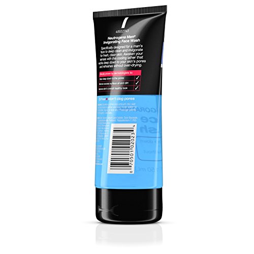 Cleans deeply and helps awaken your senses with Neutrogena Men Invigorating Face Wash. Designed for men, this foaming gel cleanser forms a cooling lather to help cleanse your skin of excess surface oil and dirt and to refresh without over-drying. The formula is shown to clean down to the pores and improve the skin’s overall look. This energizing face wash is oil-free and won’t clog pores.Feature
