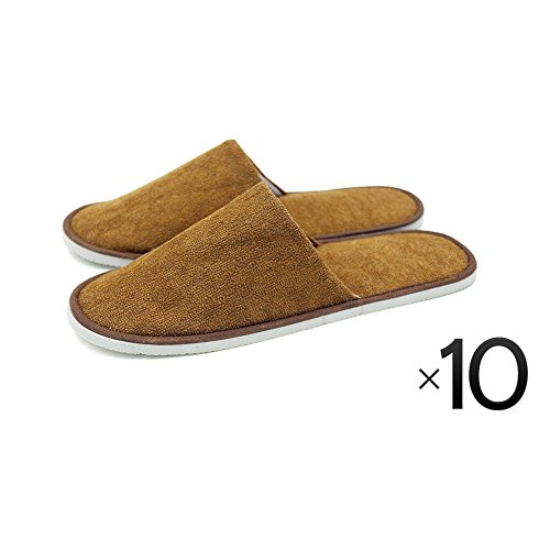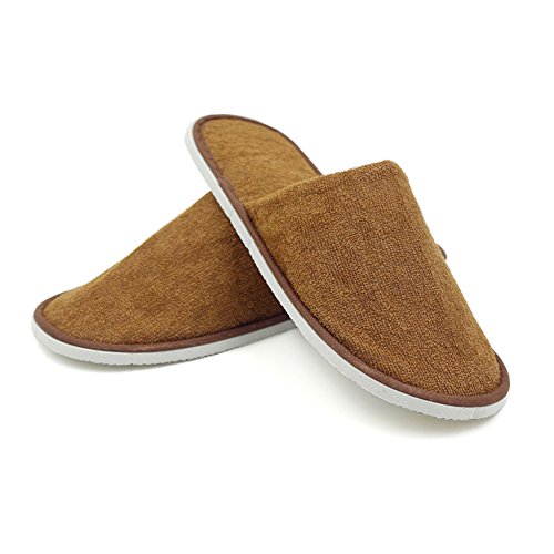 -. Title : Luxurious Cotton Cloth Slipper Slippers Home Salon Spa Hotel Men Women Closed Toes - 10 Pairs - Brown