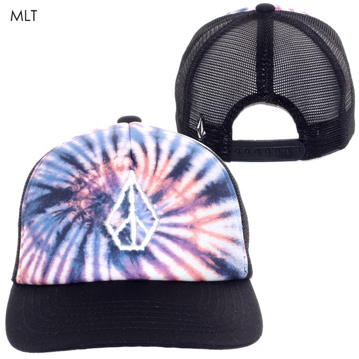 春夏の「個性派」コーディネートにオススメのメッシュキャップ!! VOLCOMらしい大胆なタイダイ柄を全面に施したフロントパネルに、手書き調の刺繍STONEロゴやバイザー裏のメッセージプリントなど拘りを感じるデザインに仕上がっています。 また、通気性に富んだメッシュ素材なので、バーベキューやレジャーなどのシーンで活躍する快適な着用感もオススメポイントです!!