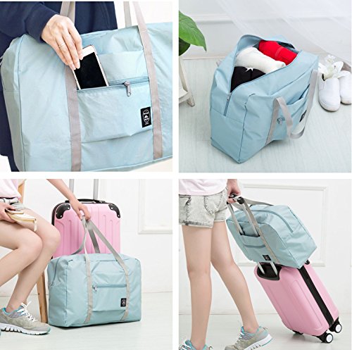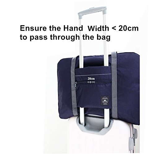-. Feature : Convenient Humane Design: Big capacity, Super lightweight and Foldable with additional zipper pockets. Convenient for your travelling around and organize all your clothes, socks, Toiletry makeups,etc. / The Lage Handle can through the Bag's Pocket: This Approved Flight Bag can be fixed stably on your suitcase or lage handle when you are travelling outside and Fold at the airport to avoid extra baggage charges. / Durable and Fashionable: Made of high quality waterproof and tear&wear resistant polyester nylon material,soft and smoothly touching feelings;high quality zippers with pull string will not break on you. High workmanship and quality control. / Bag Weight : 220grams. Bearing weight up to 20kg. Bag Stretched Size: 48*32*16cm/ 18.9*12.6*6.3inches. Folded bag size: 21*18cm/ 8.26*7 inches. / Multiple Organizer/ Storage Usage: shopping, home organizing, travelling, storage,etc. Save your time and space with big capacity.