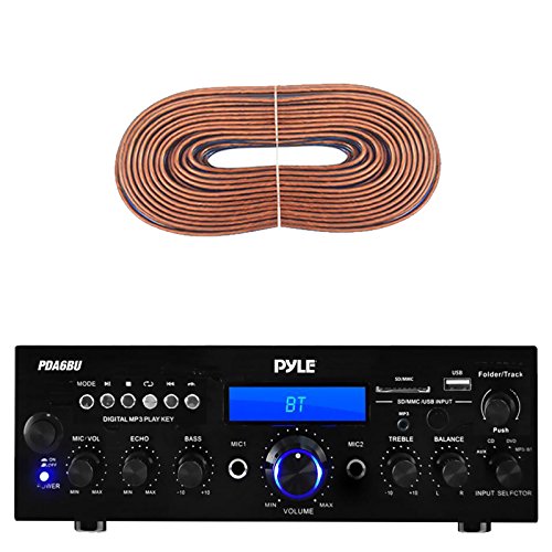 PACKAGE BUNDLE INCLUDES: 1 Pyle PDA6BU Bluetooth Stereo Home Amplifier Receiver Unit - 1 Enrock 50 Feet 18 gauge Home Speaker Wire