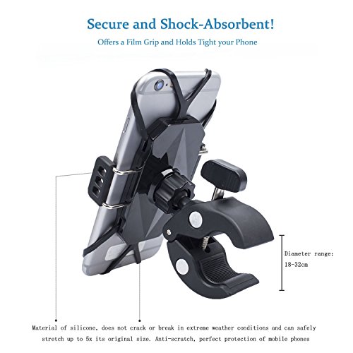 - SHOCKPROOF DESIGN: 360 degree rotatable holder lets you change perspective with a simple spin and extends up to 3.7 inch to hold devices of various sizes. Anti-slide silicone lining on the clamp securely anchors all four corners of your phone, firmly holds your Phone / GPS Device on your motorcycle, bike mount and cradle, which guard against falls, slides, and scratches