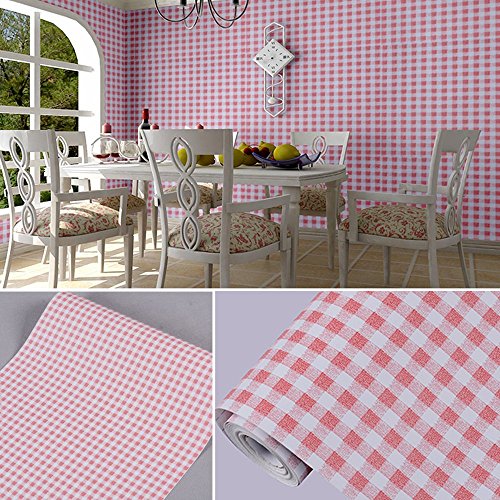 -. Title : SimpleLife4U Pink Checked Contact Paper Mediterranean Style Countertop Door Sticker Shelf Liner 17.7inch by 9.8 Feet