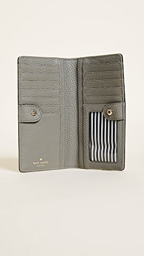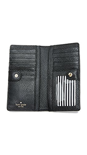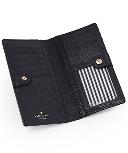 Product DescriptionA Kate Spade New York wallet in pebbled leather. Logo lettering accents the front, and a zip pocket details the back. A snap closure opens to an interior with 4 cash pockets, 12 card slots, and an ID window.0