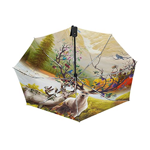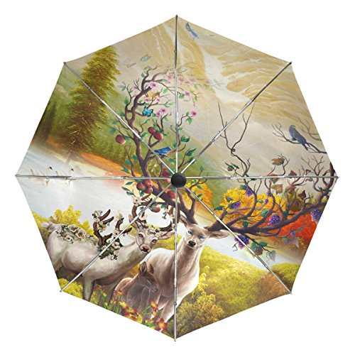 (THENAGD)/Accessories/Umbrellas/DIRECT FROM USA/Compact Travel Umbrella Auto Open Close Handle Windproof Lightweight with Coloful Reindeer Land...