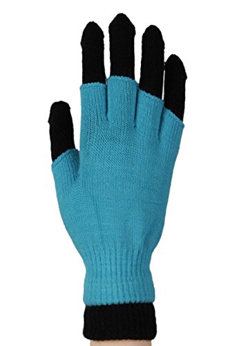 (Veil Entertainment)/Accessories/Cold Weather Accessories/DIRECT FROM USA/Solid Double Layer 2 Pair Fingerless Gloves, One Size, Neon Baby Blue Black
