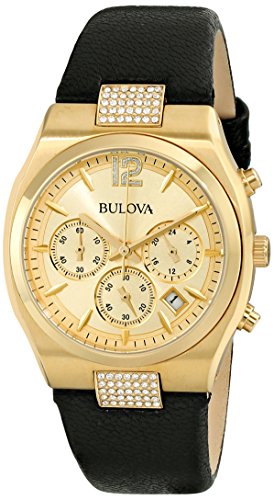 -. Title : Bulova Women's 97M107 Crystal Analog Display Japanese Quartz Black Watch